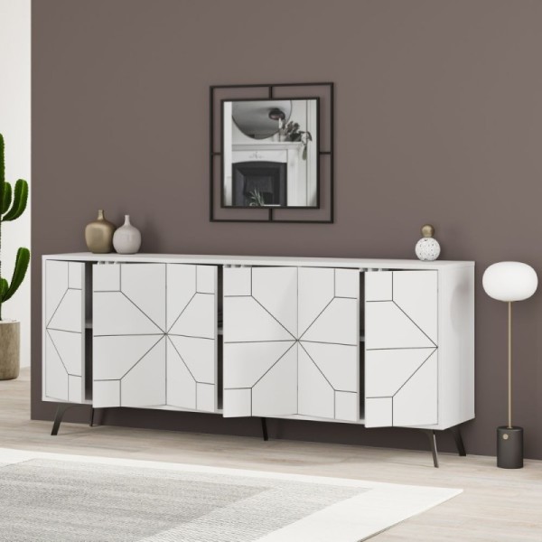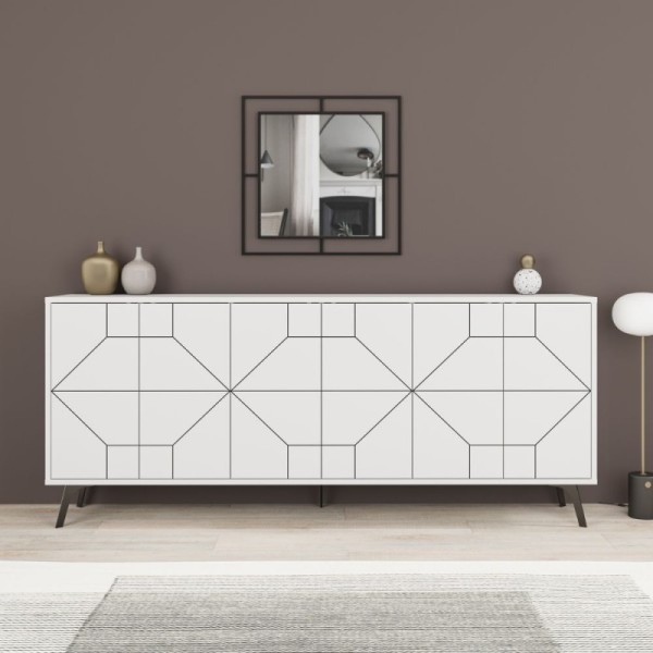 Modernes Sideboard mit Türen und geometrischem Design, mit einem eleganten und zeitgenössischen Design. Hergestellt in weiß und mit Abmessungen von 184 cm.
