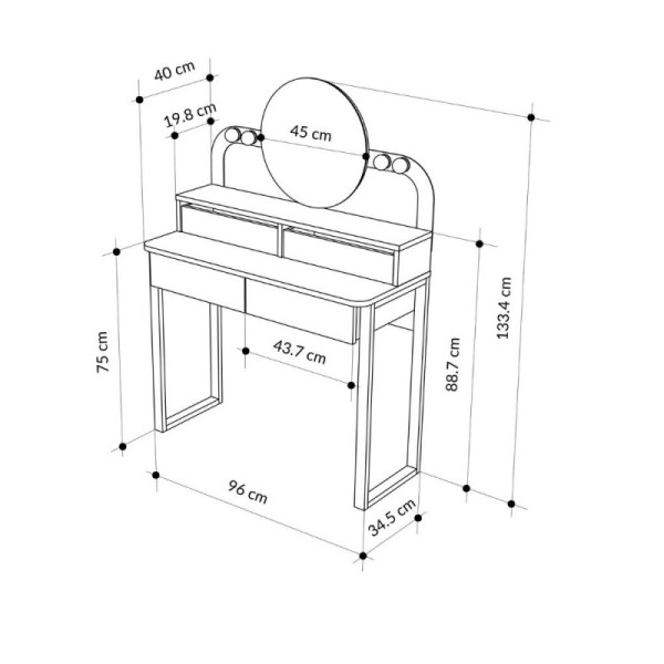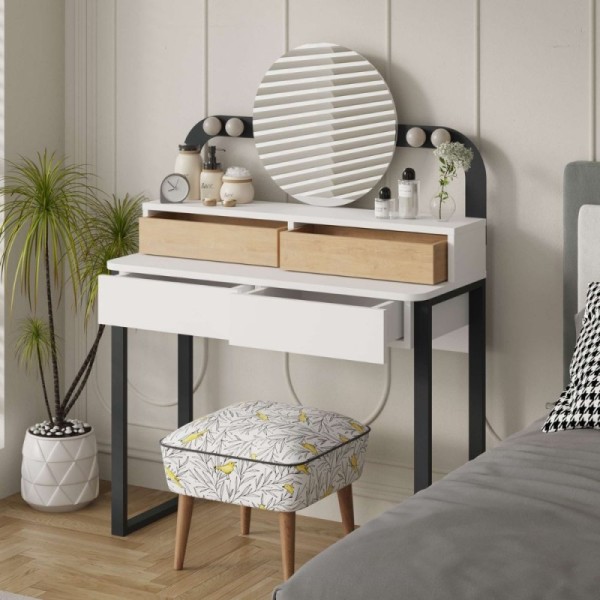 copy of Toeletta trucco con 4 cassetti luci a led e specchio rotondo colore nero e rovere Lora